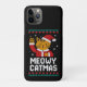 Cute festive cat in knitted look with Santa outfit and winter snow details. Perfect for holiday humor fans who enjoy cozy seasonal themes.