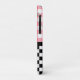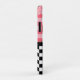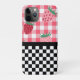 Primavera Whimsical / capa de telefone de tema de verão apresenta a metade superior de morangos vermelhos e cor-de-rosa em gingham rosa e metade inferior do quadro de xadrez preto e branco.