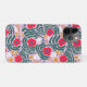 This case features a vibrant, playful floral pattern designed in a contemporary "folk art" or "scandi" style. Bold red poppies with dark blue centers. Deep forest-green fern-like leaves that curve around the primary flowers, creating a sense of movement. Small yellow five-petal flowers, tiny blue berries, and wispy white organic shapes that add brightness.