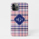 Capa Para iPhone 11 Pro Preppy branco, Marinho rosa, Madras Quatrefoil Mon