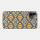 Capas de iphone psicodélica com padrões oculares estranhos, cores azul-indigo e amarelo-melada. Este divertido padrão peculiar eclético se parece com o estilo moderno do século do médio devido às suas formas geométricas.