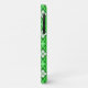 Capa de telefone em um tradicional Shippo japonês, ou "sete tesouros" com padrão de entrelaçamento de círculos com um movimento floral central - flores em branco e aqua em um fundo verde-claro, médio e escuro de jade