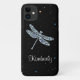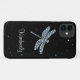 Meninas ou senhoras saudáveis, bling monogramas, caixa de smartphone para iPhone com libélula rhinestona brilhante e espaço em monograma com queda de nome, você pode substituir por seu próprio nome ou iniciais em monograma que você pode personalizar online.