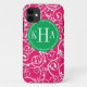 Capa Para iPhone 11 Rosa da baga & teste padrão verde do monograma do