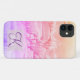 Capa Para iPhone 11 Rosa de Abstrato com Monograma de Azul Girado Pers