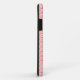 Esta capa de telefone tem um design de Arte Deco de linhas curvas de salmão em forma de triângulo num campo de branco repetido na design.