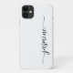 Nome Mínimo Mínimo Negra E Branco Monograma Signature Script Personalizado capas de iphone Personalizada. Este design com seu primeiro nome em um estilo bonito com letra maiúscula com letra maiúscula com letra maiúscula com letra tipografia preta em fundo branco. Excelente presente feminino para aniversário, dia da mãe, doce festa de aniversário 16, para festa de formatura e é para a garota que ama coisas na moda únicas.