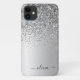 Capa Para iPhone 11 Silver Glitter Monograma Nome Luxury Girly