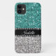 Capa Para iPhone 11 Silver Teal Sparkle Glam Bling Personalizado