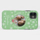 Vestir seu telefone com este cobrir de capas de iphone de renas de personagem de desenho animado giro com o texto "Feliz Natal" na tipografia elegante de script branco personalizada com sua própria foto. "Feliz Natal" pode ser mudado. Adicione seu nome de família ou seu próprio texto. Cartoon rendeer personagem com nariz brilhante vermelho sobre fundo verde-teal com flocos de neve brancos, tipografia com script branco e foto personalizada. Presente perfeito para vovó, mãe ou qualquer um. Se precisar de ajuda para personalizá-la, envie-me um e-mail e eu gostaria de ajudar. designsbykatz@gmail.com Feliz Férias!