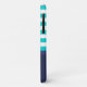 Capas de iphone náutica moderna com padrão listrado azul de turquesa e marinho e texto personalizável.
