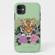 Capa Para iPhone 11 Tiger Henna Flores Púrpuras Rosa
