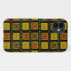 Esta capa de telefone tem um design de História Negra de círculos, triângulos, diamantes, linhas e ziguezags formando um padrão.