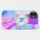Capa Para iPhone 11 Turquesa de Monograma Azul-Cinzento Personalizado