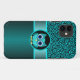 Padrão elegante, colorido e belo de espirais preto e turquesa personalizados com capas Case-Mate no iPhone 4/4S da coruja e presentes para aniversários, Natal ou qualquer ocasião. capas de iphone de coruja lindas!
