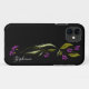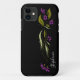 Bonito violetas roxas em cascata de um lado desta capa de telefone preta. As flores e folhas são feitas com uma técnica digital que imita o bordado.  Adicione o seu nome para tornar esta capa de telefone floral bonito sua.  ********* Designs noturnos e diários são uma pequena empresa, propriedade e operada por alguém como você.  Toda vez que alguém faz uma ordem eu faço uma pequena dança feliz!  Se você tiver alguma dúvida ou precisar de assistência com qualquer um dos meus designs, entre em contato comigo em nightanddaydesigns@gmail.com ou me envie uma mensagem pelo Zazzle usando o botão abaixo e eu terei todo o prazer em ajudar.