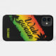 Capas de iphone preta impressa com a patwah Jamican dizendo WAH GWAAN com palmeiras de silhueta sobre um pôr do sol esmaecido feito com as cores da bandeira rasta