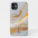 Capa Para iPhone 11 White marble chic gold glitter monogram