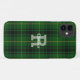 capas de iphone na moda feita no bonito padrão clássico de xadrez tartan verde, amarelo, clã preto MacArthur. Personalize o grande monograma verde-claro e o texto branco menor para atender às suas necessidades. Faz uma ideia personalizada de presente de excelente.