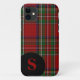 Um belo caso de iPhone 11 xadrez feito com o colorido padrão tradicional escocês Royal Stewart tartan. Um disco preto, no canto inferior esquerdo, tem um monograma de letras solteiros vermelho pronto para personalizar.