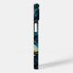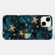 Uma capa para iPhone 14 com um elegante padrão azul com estrelas-do-mar, representando o oceano.
