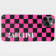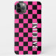 Bandeiras de corridas cor-de-rosa e preto-e-rosa divertidas marcam o padrão design. Com espaço para personalizar ou personalizar com um nome de sua escolha em cores claras, brancas e pretas. Funky, elegante, na moda e design eclético para a moda artística do rico, a diva da moda artística, o popular motim quadril, o estilo da retro-arte vintage e o amante do motif geométrico geométrico abstrato que quer proteger o telefone celular do pó e da sujeira, visto e lágrimas. Este design está disponível para o Apple iPhone 6, 7 e 8 Plus, 10 ou X, XR, XS, 11, 12, 13 Mini, 14, 14 Plus e Pro Max Celphone capas. Mostre seu estilo, fique em voga e sinta-se na moda com um design único em um acessório de dispositivo móvel de sua escolha.