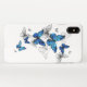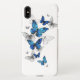 Borboletas azuis voadoras morfo e borboletas brancas em um fundo de abstrato leve. Morpho. Design com borboletas azuis morfo.
