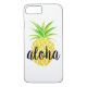 Este divertimento, capa de telefone vibrante caracteriza um abacaxi colorido da aguarela com a frase "aloha".