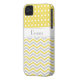 Capas de iphone amarela moderna, cinza branca e gesso branco e padrão de bolinhas. Um na moda, elegante, design cinza usando as listras clássicas de zigue-zague e bolinhas bonitas com o visual contemporâneo, mas vintage, de certo modo. Há um quadro no centro. Você pode alterar a cor de fundo - amarelo e a cor do texto escolhendo entre mais de 200 cores do gráfico de cores do Zazzle.