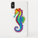 Articulação artificial, brilhante, arco-íris, cavalo de mar poligonal sobre fundo branco. Tatuagem brilhante.
