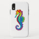 Articulação artificial, brilhante, arco-íris, cavalo de mar poligonal sobre fundo branco. Tatuagem brilhante.