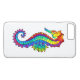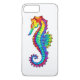Articulação artificial, brilhante, arco-íris, cavalo de mar poligonal sobre fundo branco. Tatuagem brilhante.