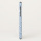 Um padrão de escala de peixes com deco de arte azul-na moda leve Mal há um gabinete iPhone X com um crachá quatrefoil bronzeado que você pode personalizar adicionando facilmente seu monograma e nome. Isto é parte da coleção de Primavera de Monograma de Pequeno Garoto Azul Escala de Peixe Aquecido.