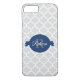 Proteja seu iPhone com um Quatrefoil Azul Personalizado Mal Ali. O design de gabinete apresenta um simples fundo quatrefoil e um emblema de rico para personalizar com seu nome e monograma. Itens adicionais disponíveis com este design também. Entre em contato comigo diretamente para obter assistência com a personalização.