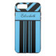 Capa Para iPhone, Case-Mate Black & Bright Blue Strips Chevrons, Seu Nome