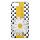Esta caixa preto e branco moderna e na moda do iPhone 7 do teste padrão de bolinhas tem uma banda amarela dourada brilhante nela e em uma flor grande da margarida de Shasta, junto com o texto do modelo para você personalizar com seu monograma, iniciais, nome ou o outro texto. Aperfeiçoe para a jovem mulher loving do divertimento com um bocado da menina ainda deixado nela. Se você precisa o auxílio, envie por correio electrónico niteowlstudio@gmail.com.
