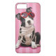 O filhote de cachorro na moda do terrier de Boston com coração deu forma aos óculos de sol, pintados pelo artista Maryline Cazenave.