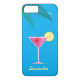 Uma ilustração de um coquetel tropical num rosa brilhante cinza num fundo azul acentuado com folhas de palma decora este caso do iPhone 7, lembrando-nos praias ensolaradas quentes. Este caso divertido e de verão é fácil de personalizar com o seu próprio nome.