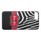 Este gabinete personalizado iPhone 7 Plus preto e branco Mate personalizado tem um padrão de fundo listrado de impressão zebra divertido com uma banda vermelha e preta para adicionar seu nome, iniciais, monograma ou outro texto. Este novo caso moderno e moderno faz uma declaração chic para o jovem motista da quadra! Se precisar de assistência, envie um email para niteowlstudio@gmail.com.