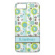 Este caso personalizado de iPhone 7 personalizado Case-Mate tem um fundo listrado branco e azul aqua com um padrão abstrato de verde limão, turquesa, flores e círculos castanhos e brancos com uma banda para adicionar seu nome, inicial, monograma ou outro texto. Este novo caso moderno e moderno faz uma declaração chic para o jovem motista da quadra! Se precisar de assistência, envie um email para niteowlstudio@gmail.com.