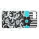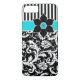 Este caso personalizado iPhone 7 preto e branco Mate-gabinete tem um padrão de fundo floral damasco e listrado com uma banda e flor azul e branca aqua com círculo para adicionar seu texto inicial, monograma ou outro. Este novo caso moderno e moderno faz uma declaração chic para o jovem motista da quadra! Se precisar de assistência, envie um email para niteowlstudio@gmail.com.