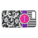 Este gabinete personalizado iPhone 7 preto e branco Mate-gabinete tem um padrão de fundo floral damask e striped com uma banda e círculo cor-de-rosa-quente, roxo e branco para adicionar seu nome, iniciais, monograma ou outro texto. Este novo caso moderno e moderno faz uma declaração chic para o jovem motista da quadra! Se precisar de assistência, envie um email para niteowlstudio@gmail.com.