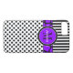 Este gabinete personalizado iPhone 7 preto e branco Mate-gabinete tem uma bolinhas divertida, um padrão de fundo listrado com uma banda e círculo de girafa roxa e preta para adicionar seu nome, iniciais, monograma ou outro texto. Este novo caso moderno e moderno faz uma declaração chic para o jovem motista da quadra! Se precisar de assistência, envie um email para niteowlstudio@gmail.com.