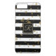 Minúscula iPhone 7/8 Plus, preto e branco, moderno, com gráficos de pontos de configuração dourados. Uma área de texto preto quadrado tem um monograma de letras solteiros. Personalize o monograma para atender às suas necessidades.