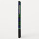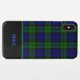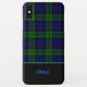 Proteja seu iPhone novo XS máximo, com este caso escocês clássico da xadrez feito no teste padrão preto universal do preto, o verde e do azul do relógio do tartan. Uma banda preta, através da parte inferior do caso, tem o texto azul pronto para personalizar.