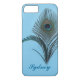 Uma pena de rico em um fundo de turquesa decora este caso do iPhone 7. É fácil personalizar com seu nome ou iniciais.