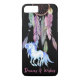 Esta capas de iphone apresenta um cavalo branco e azul mágico, uma bonito caçadora de sonhos e o texto... "Sonhos e Desejos".