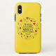 Esta capa de telefone floral apresenta flores vermelhas brancas e arroxeadas com folhas verdes contra um fundo amarelo vibrante e a citação "A vida me parece muito curta para ser gasta em animosidade ou registrando erros." da Jane Eyre da Charlotte Brontë. *Observe que a Marca d'água do Zazzle que aparece na visualização de zoom não aparecerá no produto impresso final. © Bookish e Maravilha