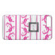 Bonito chic brilhante colorido cor-de-rosa e branco, fuchsia colorido, e umdamasco branco com iniciais monograma personalizado, texto modelo, numa fivela de fecho prateada. Personalize o plano de fundo de qualquer cor que você queira criar sua própria caixa especial exclusiva de rolagem feminina de na moda girino para proteger seu dispositivo. Este na moda elegante design sofisticado, seria excelente para meninas ou mulheres. Visite a LOJA PERSONALIZEDSKINS para capas correspondentes.