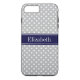 Capa Para iPhone, Case-Mate Cinza Bolinhas Branco Marinho Azul Nome Monograma
